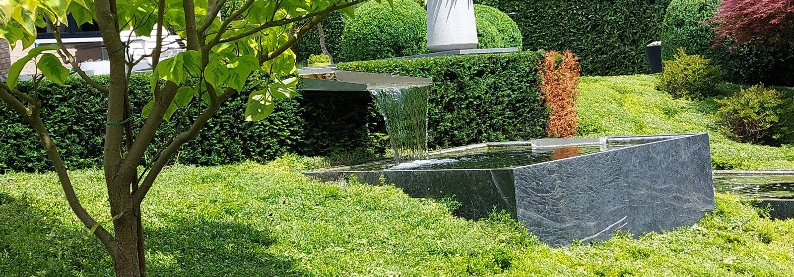Points focauxFontaines sur mesure en pierre, métal ou verre pour créer des ambiances sonores apaisantes.